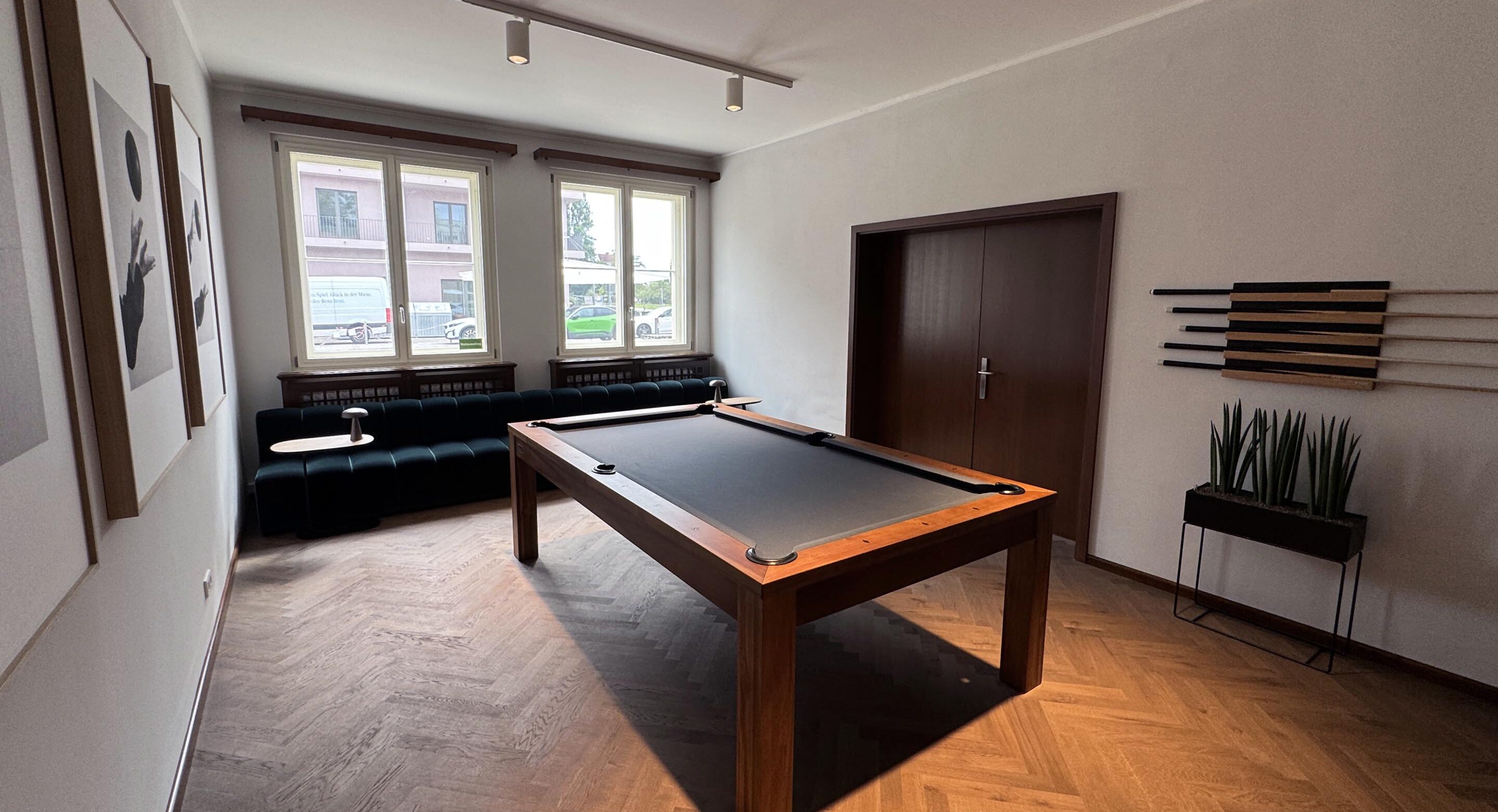 Der Billard Room ist Teil der Shared Spaces im Haveluferquartier und kann ebenfalls von Bewohner:innen des Quartiers bequem über die App gebucht werden.