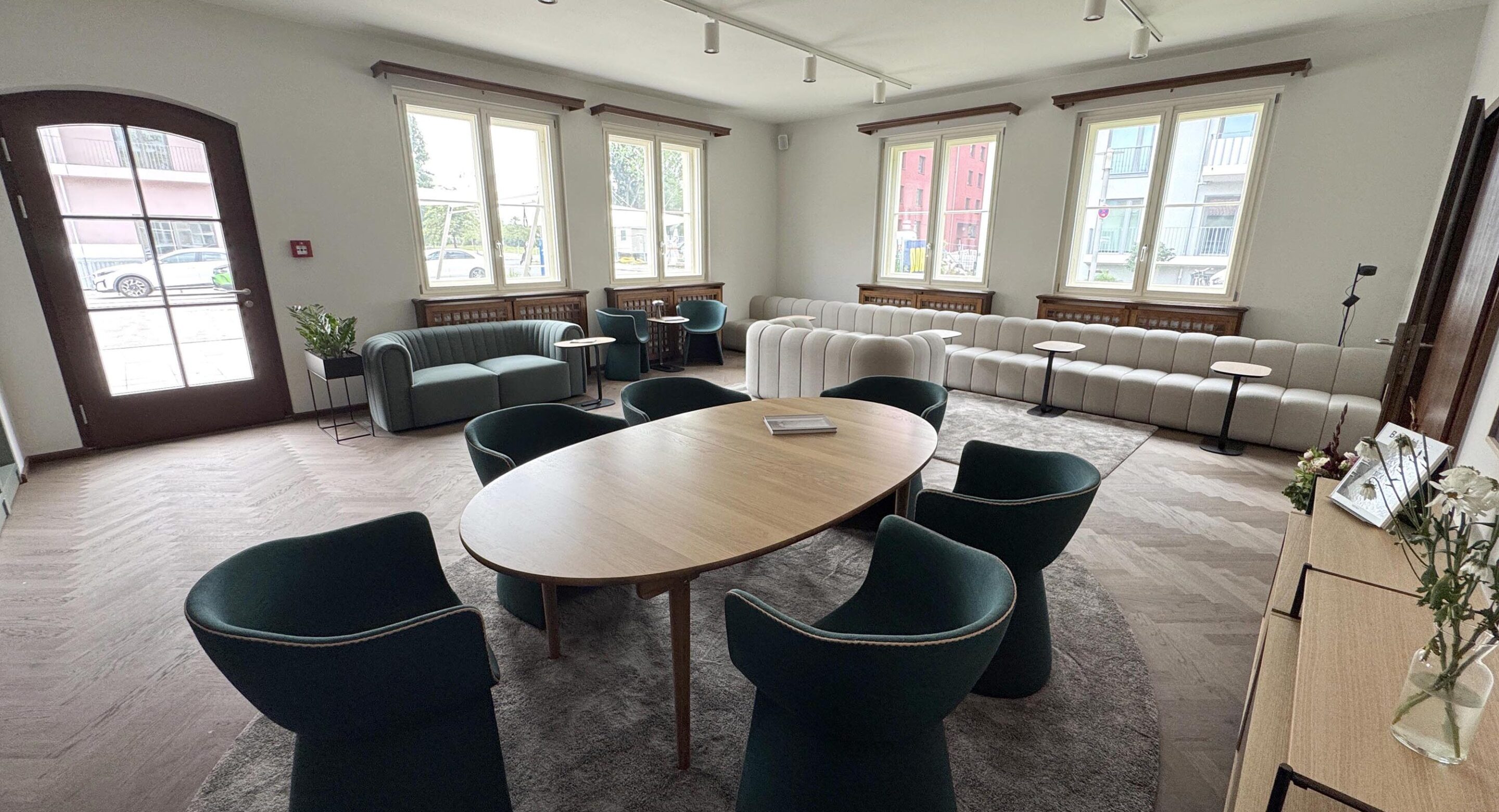Dein stilvoller Treffpunkt im Haveluferquartier. Hier treffen modernes Design, gemütliche Sofas und elegante Details wie edle Teppiche und kunstvolle Wandbilder aufeinander. Ob zum entspannten Plausch, für kreative Meetings oder einfach zum Abschalten. Der Living Room bietet den perfekten Rahmen in besonderer Atmosphäre. Der Living Room kann auch mit anderen Räumen von qnorke kombiniert werden.